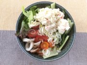 うp主 2021年07月03日 18:46 前回の塩もみキュウリ塩ラーメンが美味しかったので、今回はサラダラーメンをつくってみました。冷蔵庫にポテトサラダがあったので、これにマヨネーズをたっぷりかければうまいはずだと・・・ トマトは切らしていたのでミニトマトに、ハムも切らしていたので竹輪に変更。