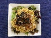 うp主 2021年08月19日 09:34 しょうゆ味付きの鯖缶があったので、冷やしラーメンをつくってみました。 使用する鯖缶がしょうゆ味なので、袋麺も醤油味です。 鯖缶の汁にはEPAやDHAなどの体にいい栄養素が含まれているので、無駄なく使います。 また、汁を入れることによって旨みも増します。 缶詰の汁も入れるので、粉末スープの量は2/3くらいにしました。