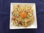 うp主 2021年06月05日 15:41 塩ラーメンをカルボナーラ風にアレンジというレシピが載っていたので試してみました。 豆乳を入れると結構な勢いで泡立ち、茹で時間が分かり辛いですが短めがいいようです。 チーズは「ひとつかみ」です。「ひとつまみ」ではありません。 枝豆は色合いのために入れてみました。キャベツは存在感を失ってます。(笑)